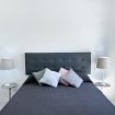 El dormitorio principal es en suite y cuenta con una cómoda cama doble, un armario empotrado amplio y acceso directo a la terraza exterior. El segundo dormitorio cuenta con dos camas individuales, un armario empotrado y acceso a la terraza interior. El segundo baño consta de ducha, lavabo e inodoro.